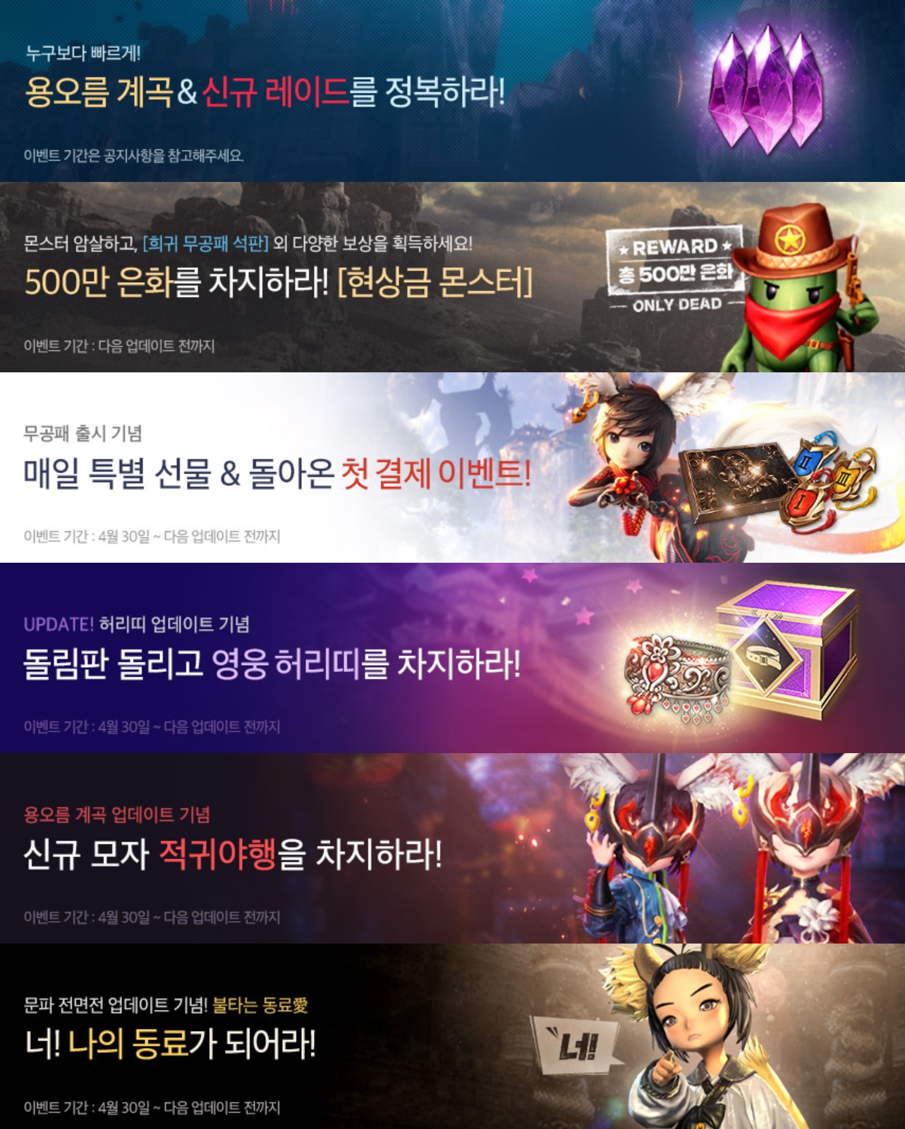현재 업데이트를 기념해 다양한 이벤트도 진행하고 있으니 관심있는 분들은 이런 것도 놓치지 않도록 하심이 좋겠습니다. 이 포스팅은 여기까지입니다 ;)