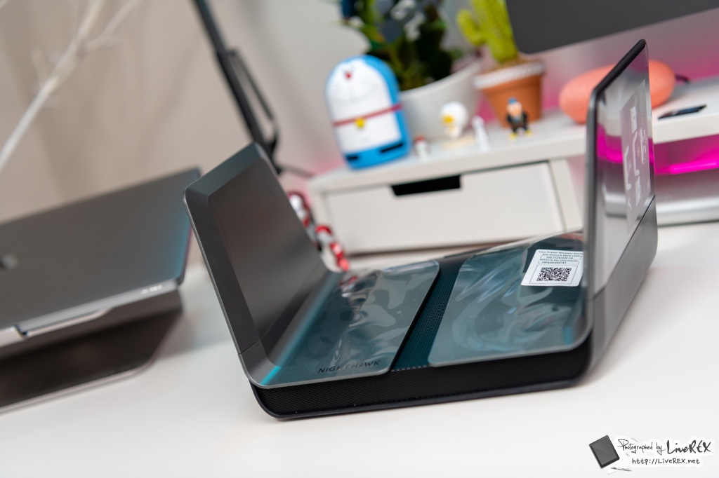 공유기 본체는 전반적으로 발열 처리에 최적화 된 형태를 보이고 있는데요. 참고로, 날개 내부에는 고성능 안테나 4개가 담겨져 있습니다. 덕분에, 커버리지가 넓은 효과를 기대할 수 있다 하네요. ▼