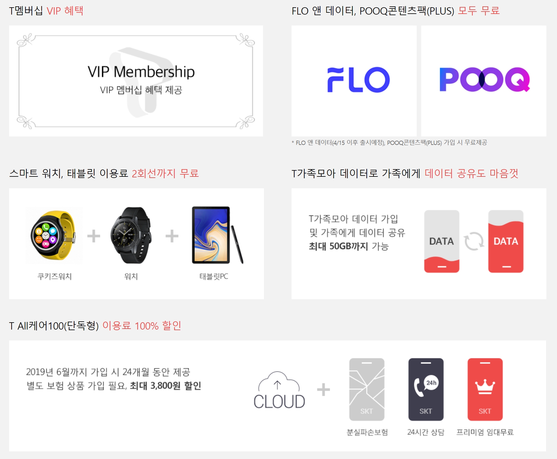 게다가 스마트기기 2대를 요금제 부담없이 쓸 수 있고, FLO와 POOQ 모두 무료로 쓸 수 있는 구성을 보여주고 있네요.