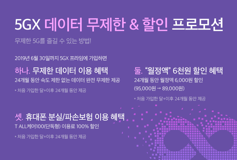 요금제 자체에 초점을 맞춰 이야기를 하고 있는데요. 사실 5월 이후로 프로모션이 더해지면서 휴대폰분실/파손보험을 무료로 적용받을 수 있는 부분이라던지 5G 데이터 함께쓰기가 원래 회선당 5천원이던 것을 한시적으로 무료로 제공받을 수 있는 변화도 있어 좀 더 눈길을 끈다 하겠습니다.