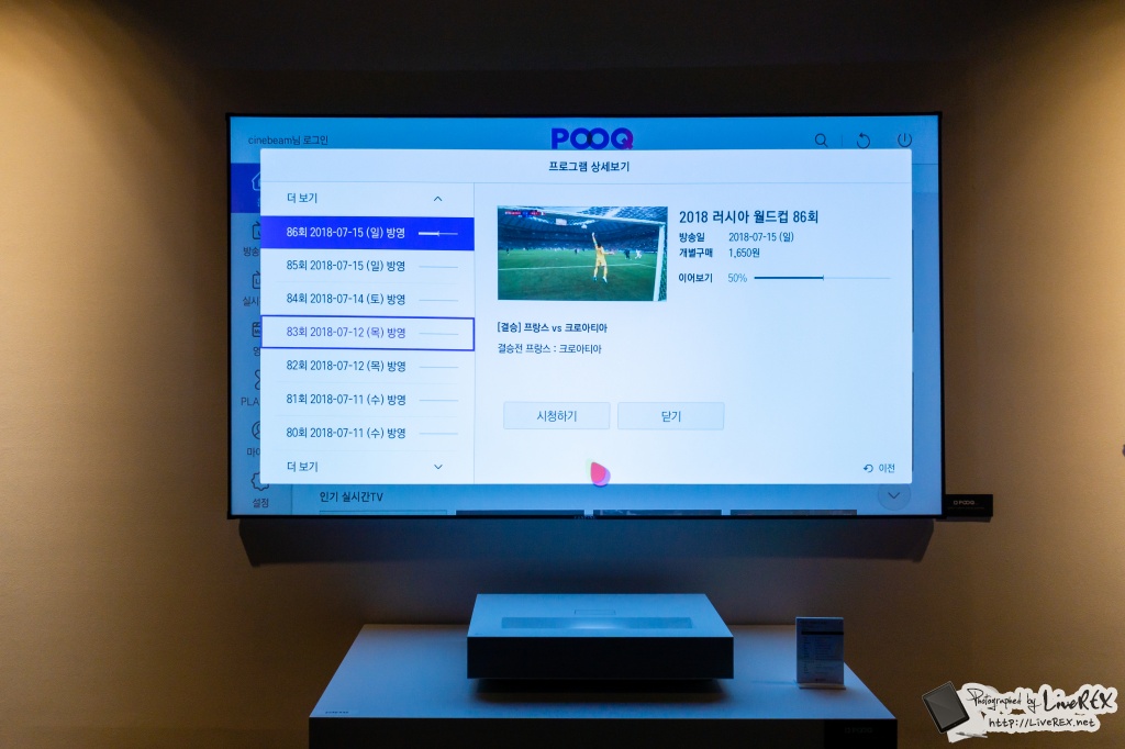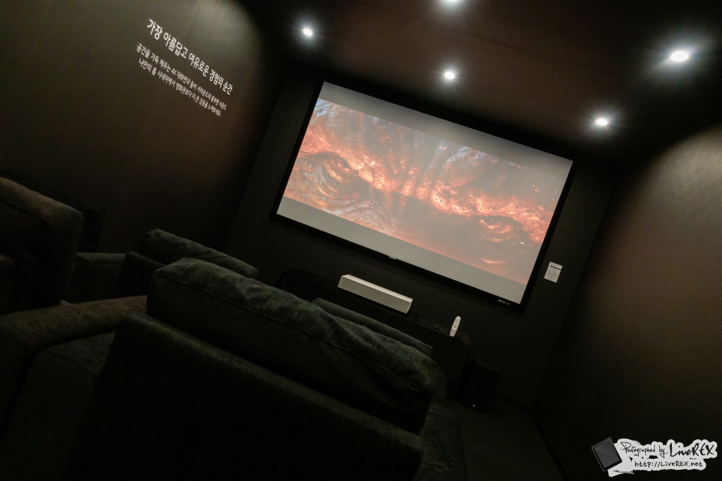 이게 끝이 아니라, 4K 초고해상도로 콘텐츠를 감상할 수 있다는 점도 인상적으로 다가왔는데요. 2700안시 루멘 밝기 덕분에 문자 그대로 생생한 화질을 직접 체험해 볼 수가 있었습니다. ▼