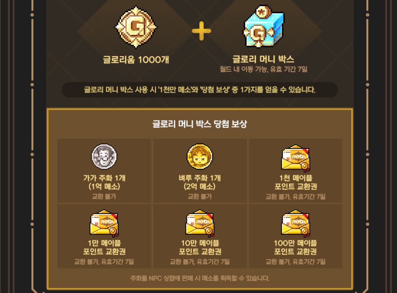 개인적으로, 테네브리스 원정대원 선물 중 글로리 머니 박스가 유독 흥미롭게 다가왔는데요.