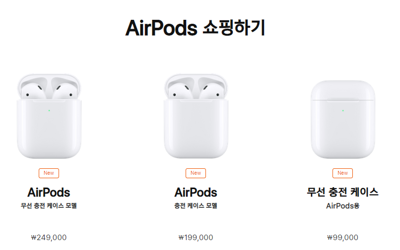- 애플 온라인 스토어 : 무선 충전 에어팟 가격 - 249,000원