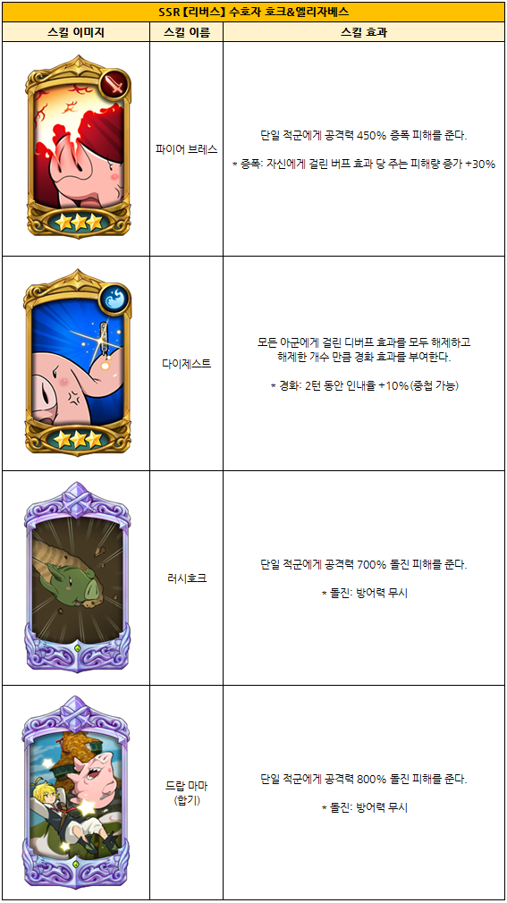이 영웅의 스킬 정보는 위 도표를 보시면 도움이 될 거예요.