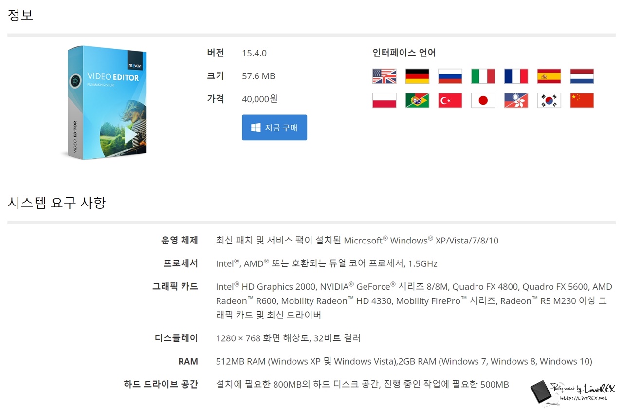 우선, 최신 버전 기준으로도.. MOVAVI Video Editor는 보시는 것처럼 크게 PC 사양을 타는 녀석이 아닙니다. 그래서 웬만한 환경에서는 다 쓸 수 있을 정도라는 게 특징인데요. 윈도우, 맥 모두 지원 해요. ▼