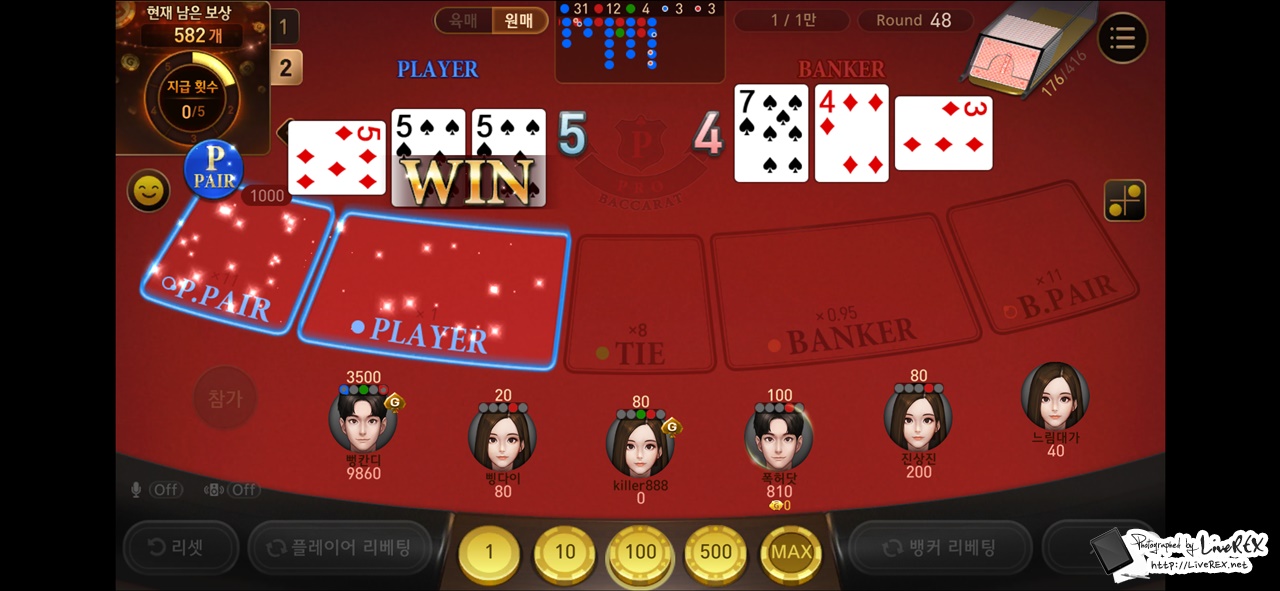 참고로, 게임이 시작되면 기록표를 확인할 수가 있어요. 처음에는 눈이 잘 가지 않지만, 이를 통해 결과를 어느 정도 예측할 수도 있으니 이런 부분도 잘 알아두시면 좋을 듯 합니다.