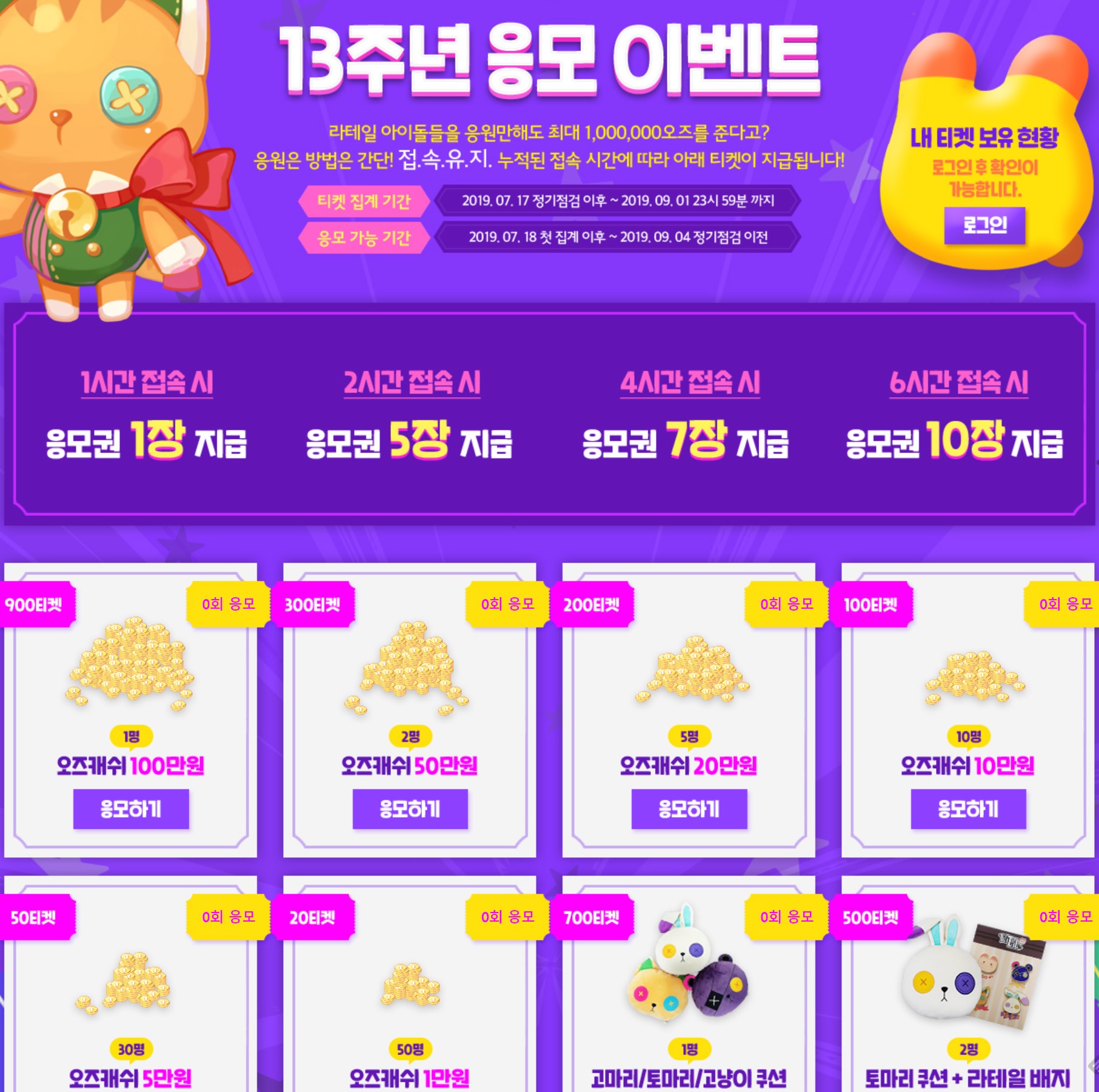 게임 접속 시간에 따라 지급되는 응모권으로 다양한 상품에 응모할 수 있는 내용 등이 있으니 이런 것들도 놓치지 마세요 ^^