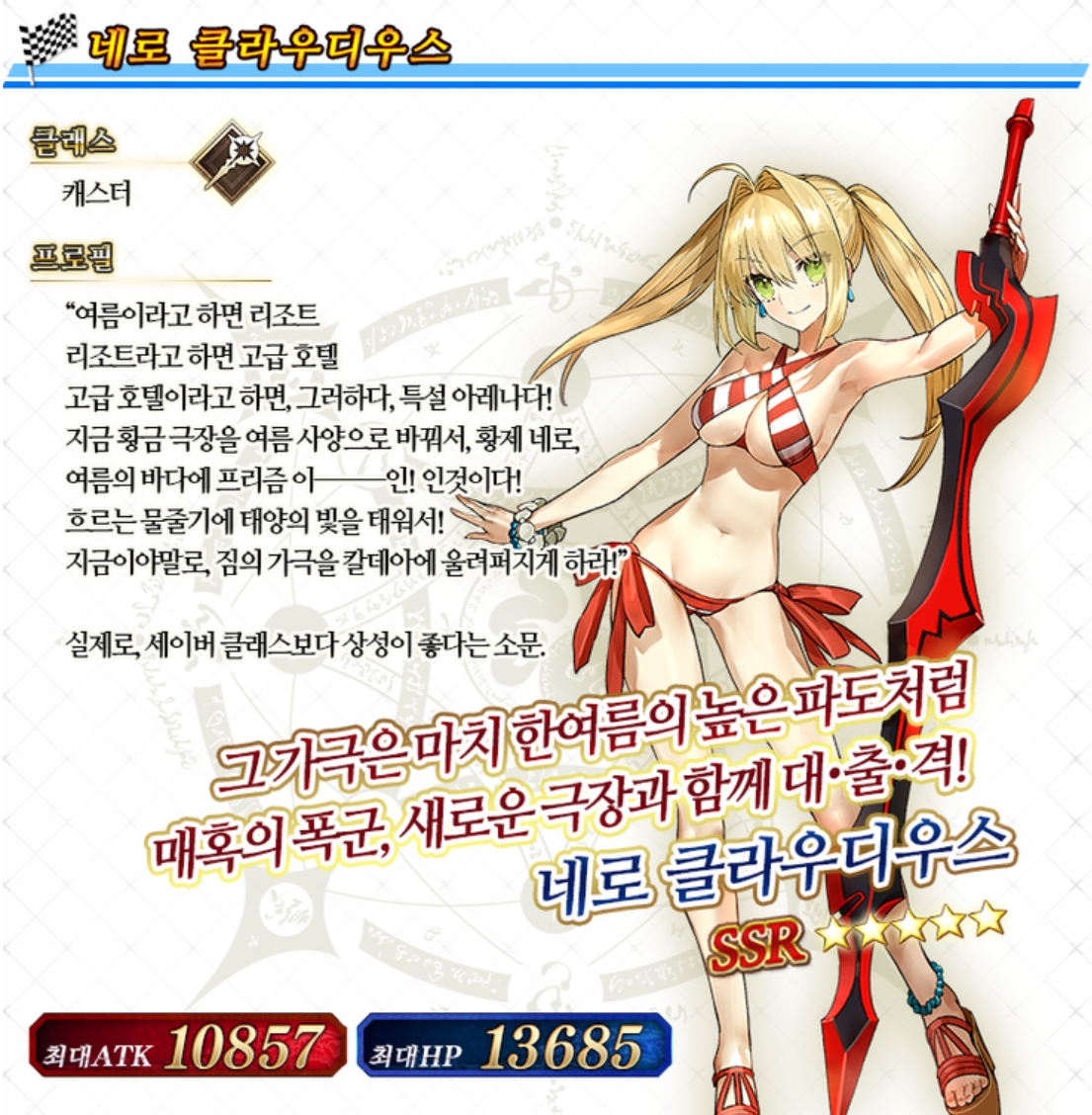 아시겠지만, 한그오에서는 처음 진행되는 것이기 때문에 이들 모두 처음 나오는 캐릭터라 더 시선을 사로잡는데요. 개인적으로 네로 클라우디우스 캐스터의 경우 대군 보구(전체공격)를 가지고 있어서 더 기대감이 높네요.