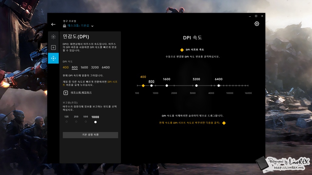 참고로, 게이밍을 말할 때 빼놓을 수 없는 DPI 감도 설정에 있어서도 아쉬움은 없었습니다. HERO 16K 센서 덕분에 말이죠. 지난 글에서도 설명한 것처럼, 이 덕분에 기존 대비 10배 향상된 전력 효율, 최대 속도 400IPS, 최대 16,000 DPI 감도를 경험할 수 있습니다. ▼