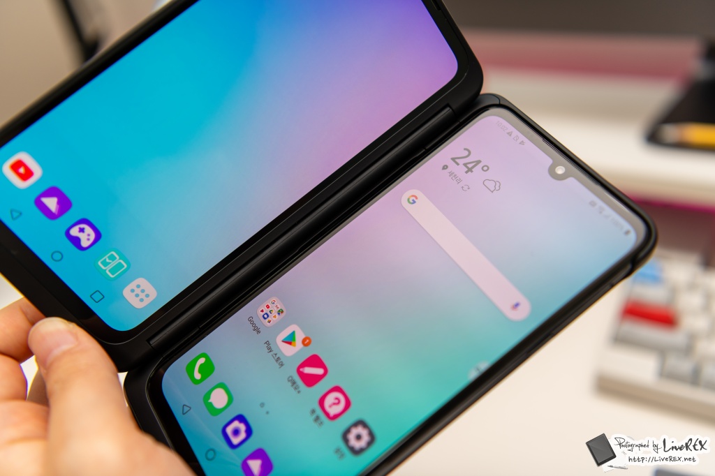 듀얼 스크린을 펼쳐보면, 기존과 달리 V50S와 듀얼스크린의 화면부가 꽤 통일감 있게 처리된 걸 알 수가 있습니다. ▼