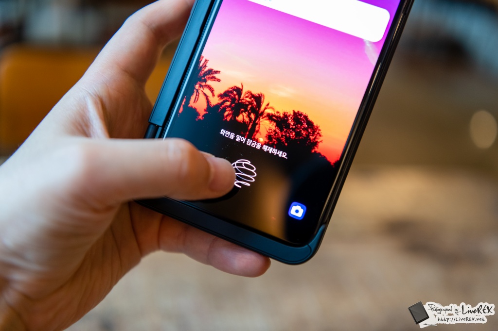 이번 LG V50S 씽큐와 2세대 듀얼스크린은 이런 부분까지 고려한 모습입니다. 본체 내 지문인식이 온 스크린 방식으로 바뀌었어요. 즉, 디스플레이에 지문인식 기능이 들어간 겁니다. 이건 꽤 반가웠습니다.
