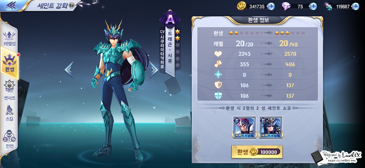 살펴보니, 주로 원작 스토리상 관련 있는 세인트끼리 파티를 짜면 시너지가 발생했는데요. 예를 들어, 시류와 세이야를 모두 보유하면 물리 공격 증가 효과가 생기더군요.
