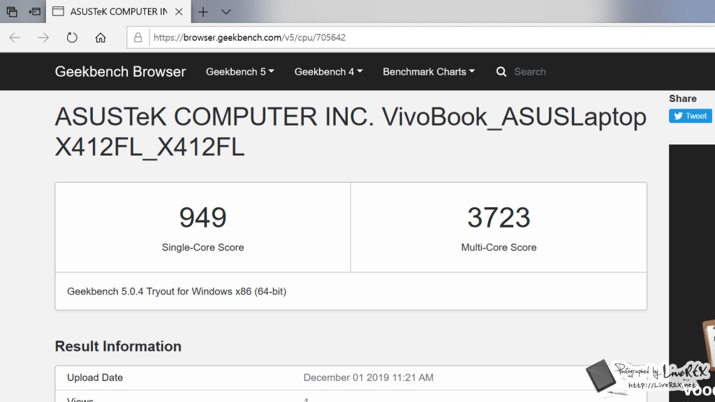 긱벤치5 기준으로 점수를 살펴봤습니다. 싱글코어 949점, 멀티코어 3723점을 기록했네요. ▼