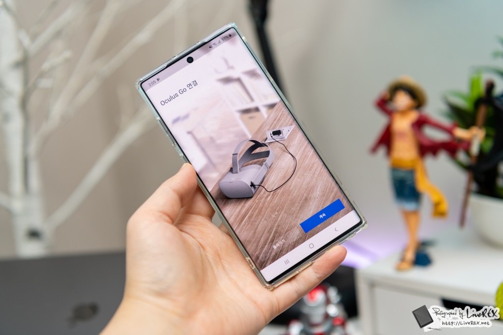 마지막으로 보시는 것처럼 스마트폰과 미러링도 됩니다. 오큘러스 고 내 보여지는 화면 그대로 폰에서 볼 수 있어요. ▼