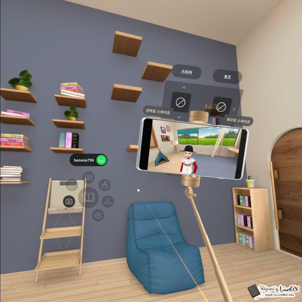 또, 셀카봉을 들면 인증샷을 남길 수도 있습니다. 아바타 모습 그대로 혹은 동물 가면 등을 착용하고 포즈를 지정하면서 찍는게 되네요~ ▼