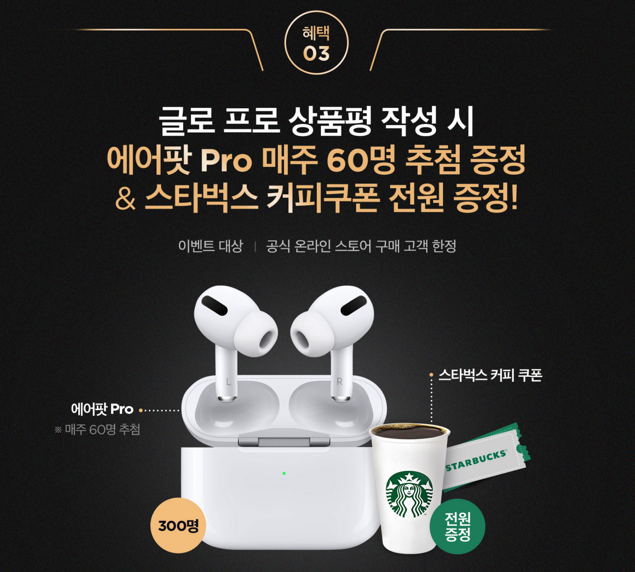 글로 공식 온라인 스토어에서 글로 프로를 구매하면 3만원 할인 쿠폰을 통해 제품을 저렴하게 구매할 수 있고, 구매 시 글로 라이브 2만 포인트를 받을 수 있는 이벤트와 기기 등록 시 5천 포인트 적립, 그리고 상품평 작성 시 매주 60명을 추첨해서 에어팟프로를 선물하는 이벤트가 진행되고 있으니 참고하시면 도움이 될 듯 하네요.