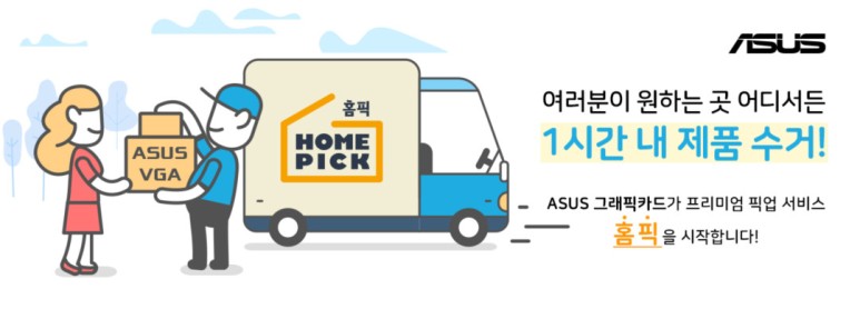 가정이나 직장에서 발송 제품을 준비한 후 ASUS VGA 공인 서비스 센터(070-4255-1809)로 홈픽 서비스를 신청하면 1시간 내에 기사가 방문하여 제품을 수령하여 센터로 발송한다고 하네요. 즉, 개인이 택배를 신청하거나 포장하여 보낼 필요가 없는거죠.