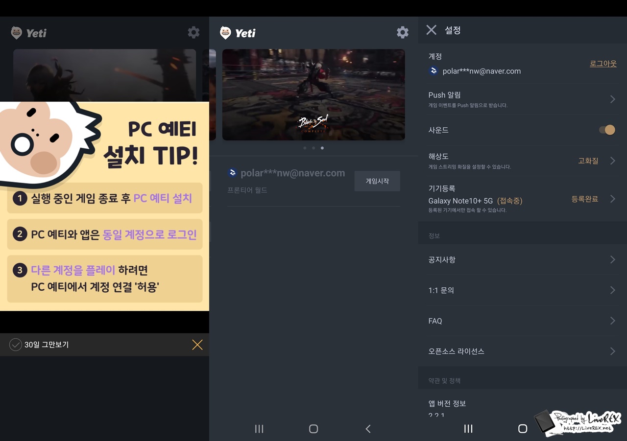 이후에는 모바일 예티 앱으로 접속을 하니 곧장 PC와 동일한 화면이 스트리밍으로 보여지더군요. 그래픽 퀄리티 또한 상당한 모습이었습니다. 당연히 모바일을 통해서도 퀘스트 진행, 자동사냥 등이 모두 가능합니다. 해서 남들보다 좀 더 시간을 투자해서 캐릭터를 키워가고 싶다 하는 분들은 이런 부분도 잘 활용하시면 도움이 될 것 같네요 ^^