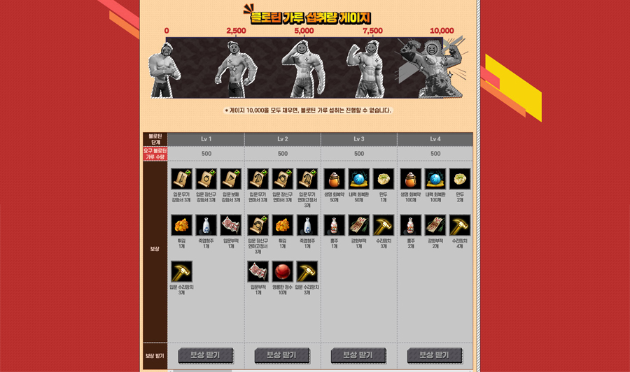 또한, 매일 접속 시간에 따라 주어지는 보상도 상당해요. 생명 회복약, 내력 회복환, 만두, 홍주, 강화 부적, 연월도 모래시계 등이 주어지네요.