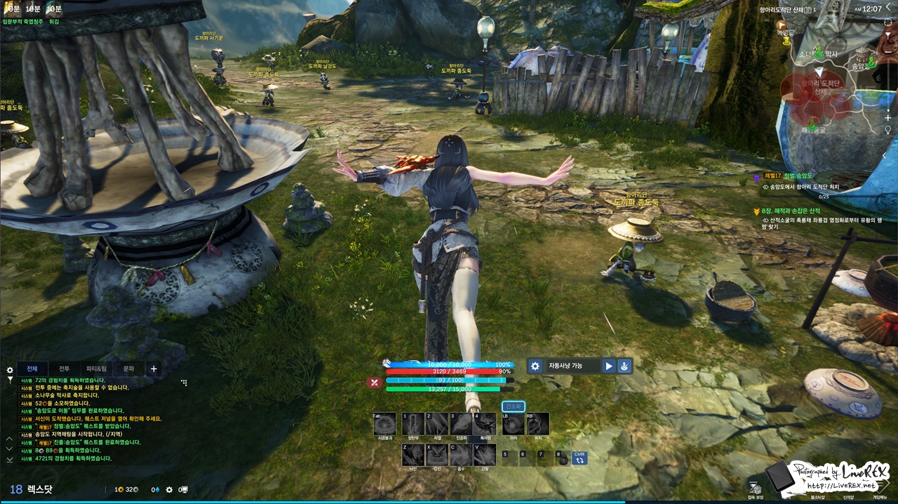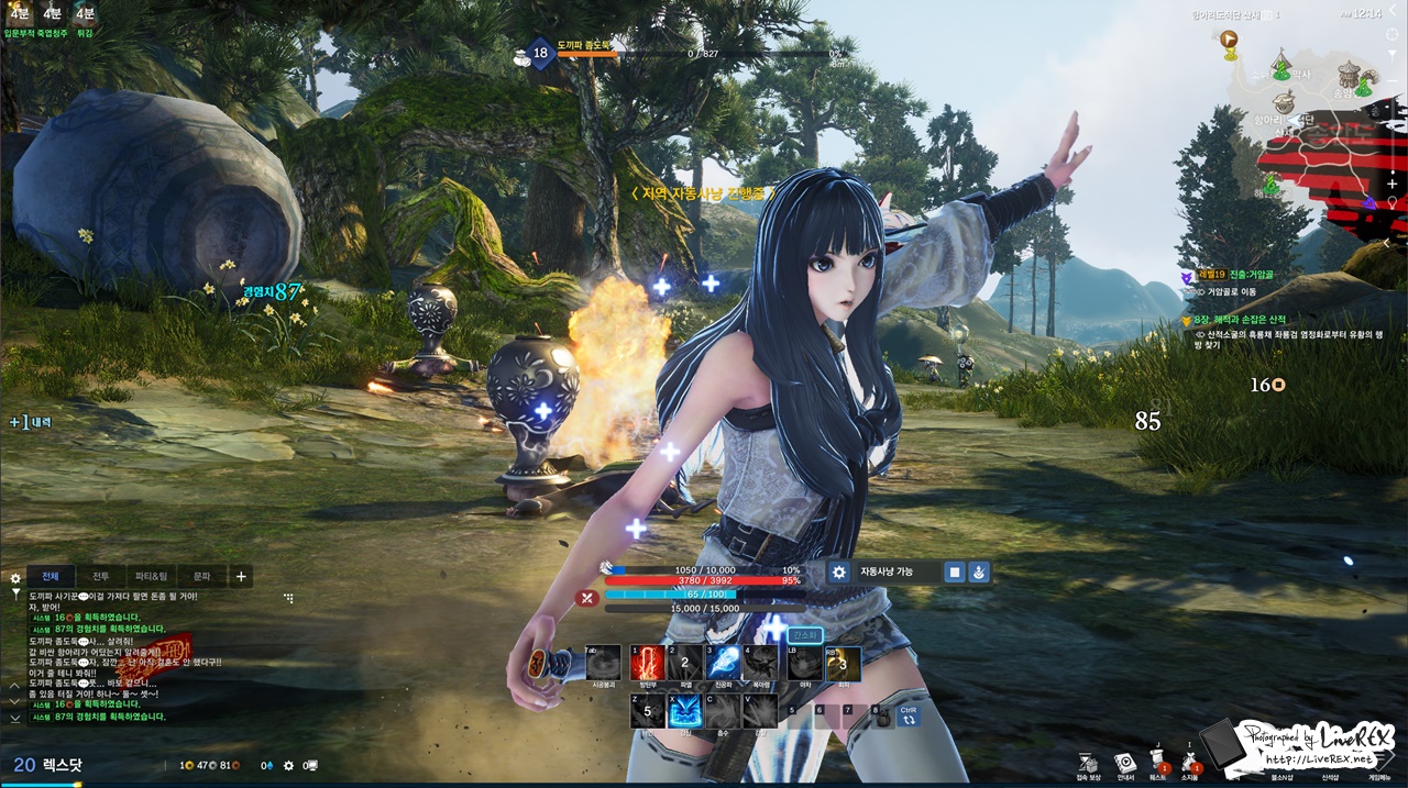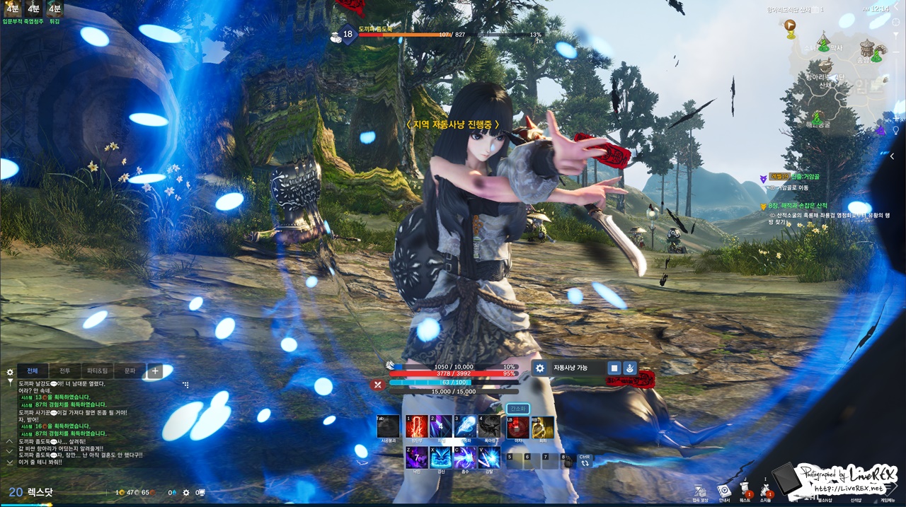 또, 자동사냥 시스템이 훨씬 더 편리해졌습니다. 천하무림 퀘스트 경우 사냥 빈도가 높은데요. 자동사냥을 켜두고 잠시 어딘가(?)를 다녀오곤 했는데, 이를 통한 진행 또한 꽤 효율적으로 다가왔습니다. 몇몇 게임 경우 자동사냥을 하다보면 뭔가 답답한 AI 탓에 이유없이 캐릭터가 죽거나 하는 경우가 더러 있잖아요? 블소는 전혀 그런 불편이 없었어요~