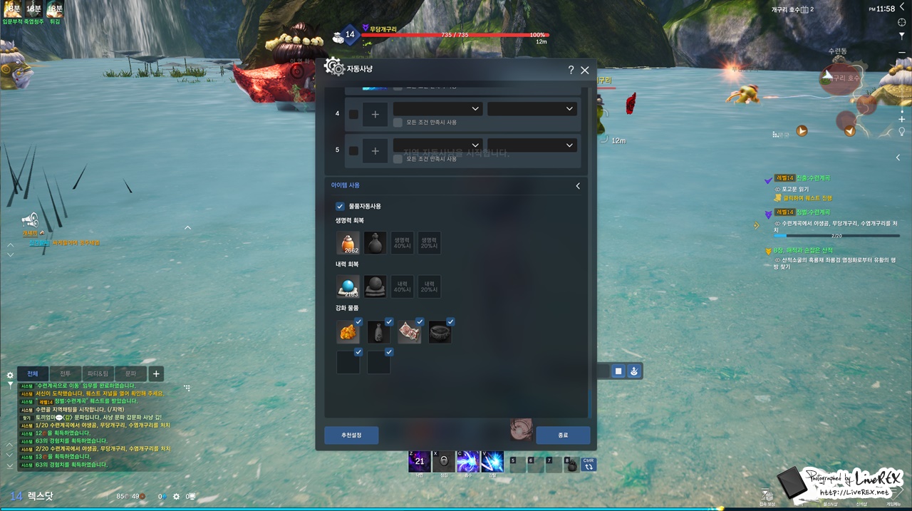 참고로, 자동사냥 과정에서 아이템 또한 자동으로 사용하는 게 가능한데요. 이런 부분에 대한 세밀한 지정도 되서 좋더군요.