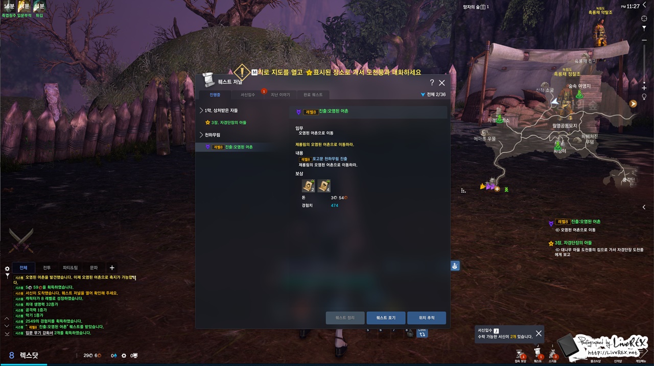 프론티어 월드에서는 3레벨에 달하는 시점부터 천하무림 퀘스트를 통해 훨씬 더 빠른 성장이 가능합니다. 이는 퀘스트 및 맵에서 보라색으로 표시가 되는데요. 이것만 진행을 해 나갔는데도 금새 20레벨 언저리를 찍어버리더군요. 소개되는 후기들을 보니 하루만 꾸준히 해도 50레벨은 충분히 찍는다고 합니다. 엄청나죠?