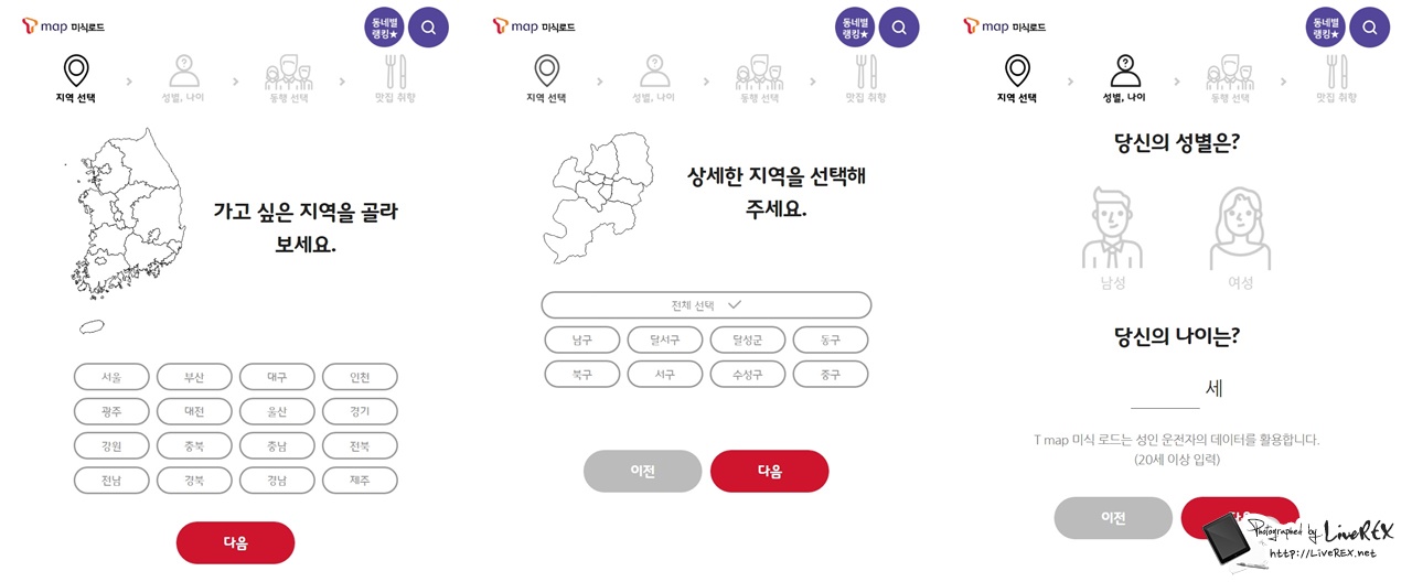 PC 에서도 이 서비스를 접근할 수 있는데요. 들어가보면 지역, 성별, 나이, 동행자 등을 고려해 맞춤형 맛집을 추천하는 걸 알 수 있습니다.