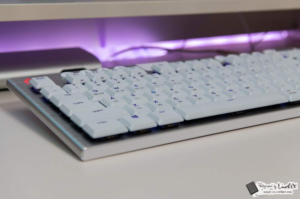 로지텍 G913 TKL 화이트는 항공기에 쓰이는 5052 알루미늄 합금 소재로 제작되어 고급스러움도 잘 묻어납니다. 실제로 만져보면 튼튼한 내구성이 충분히 손 끝으로 전달되네요. ▼
