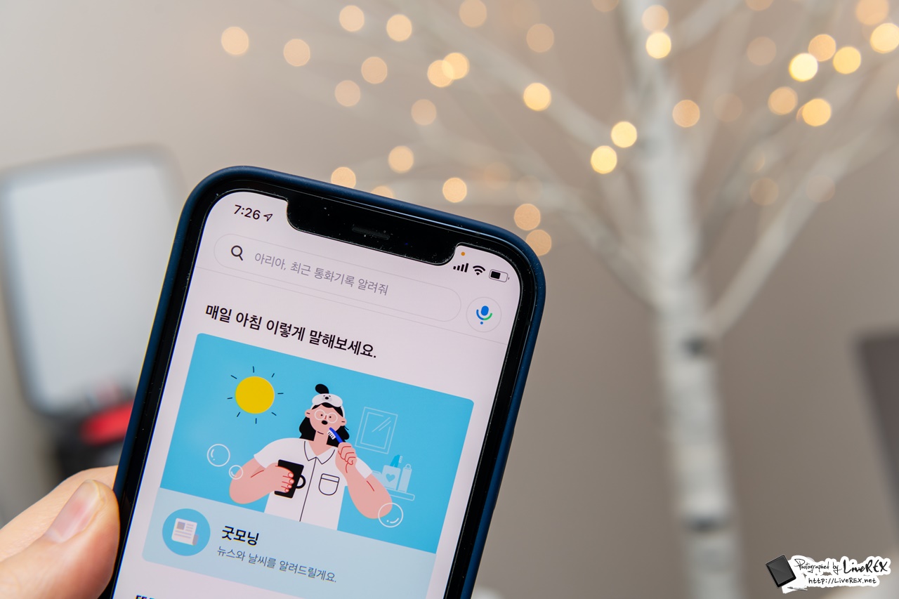 화면에 보이는 것처럼 아리아를 호출한 뒤 일어났어, 굿모닝 등과 같은 말을 하면 날씨와 뉴스 등을 알려줍니다.