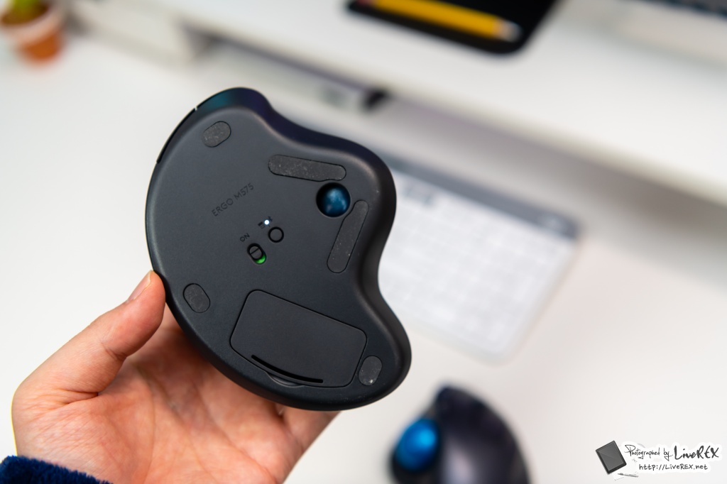 또, 사진에서는 잘 구분이 안될지 모르겠지만 M570 대비 손이 좀 더 안정적으로 놓아지는 듯한 느낌도 있습니다. 개인적으로는 손이 맞닿는 각도가 M575 모델이 좀 더 괜찮아 보였습니다. 그리고 트랙볼 부분도 더욱 부드럽고 안정적인 느낌을 주었습니다.