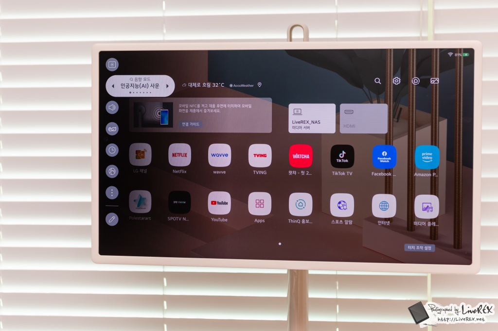 2021년형 LG TV 와 같이 webOS 6.0 을 탑재하고 있어서 LG TV 의 주요 기능을 그대로 담고 있으며, 인공지능 화질엔진인 4세대 인공지능 알파7도 탑재하여 더더욱 화질 측면에서는 좋은 인상을 받았습니다.