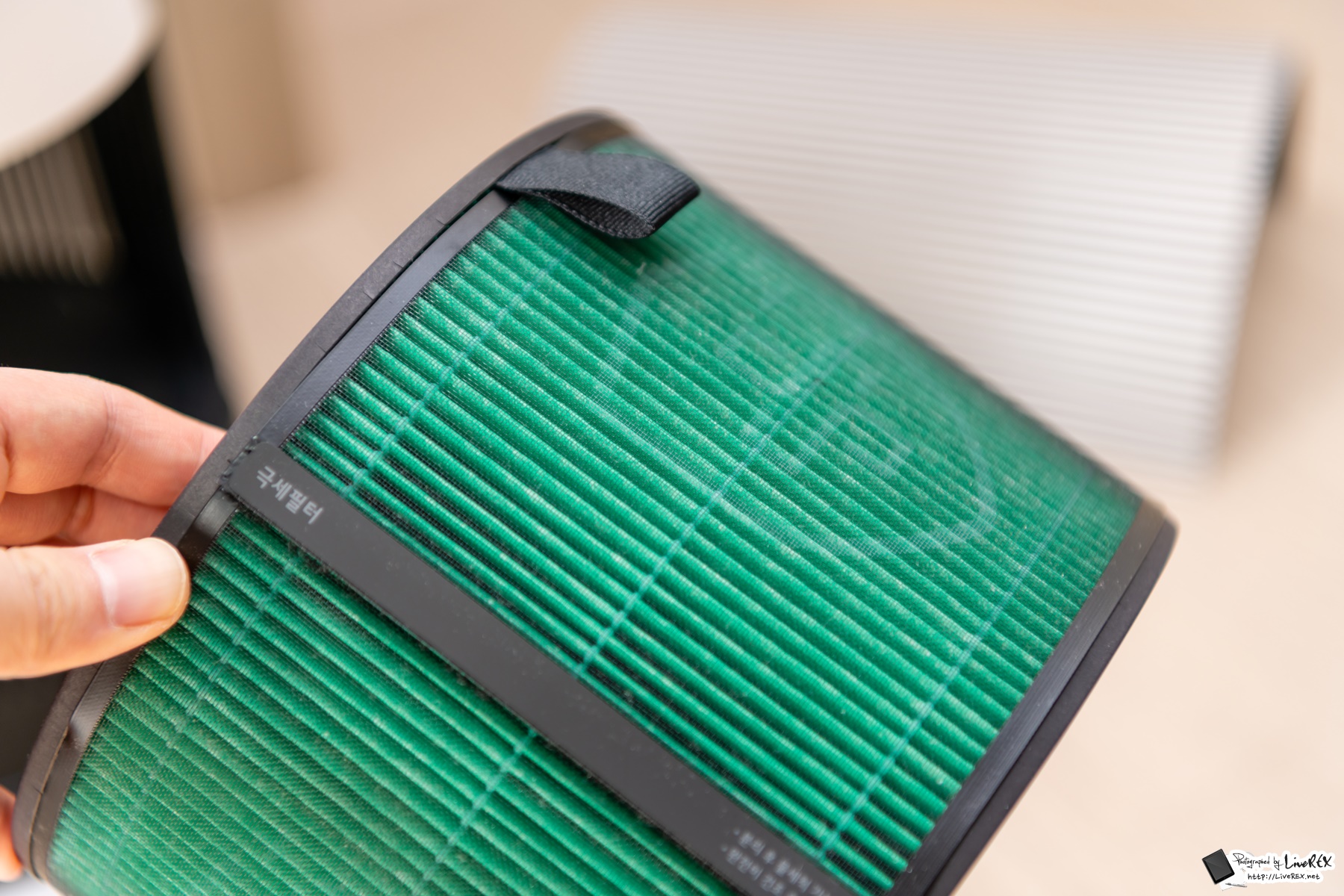 조금 첨언하면, 필터 겉면에는 부착형 극세필터가 있는데요. 이는 동물의 털이나 일상생활에서 발생하는 큰 먼지를 제거하는 역할을 합니다.